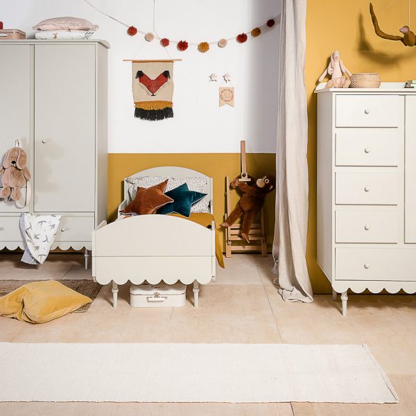 Niezwykle urokliwa łóżeczko w stylu retro. Posiada 3 poziomy regulacji materaca, dodatkowo jedna z ramek bocznych posiada 3 wyjmowane szczebelki aby umożliwić już starszemu dziecku samodzielne wychodzenie z łóżeczka. Łóżeczko 70 x 140 cm wyposażone jest w dodatkowe elementy, które umożliwiają konwersję na łóżeczko dla starszego dziecka. Zabezpieczają one również dziecko przed wypadaniem. Do łóżeczka pasuje materac o wymiarach 70×140 cm.