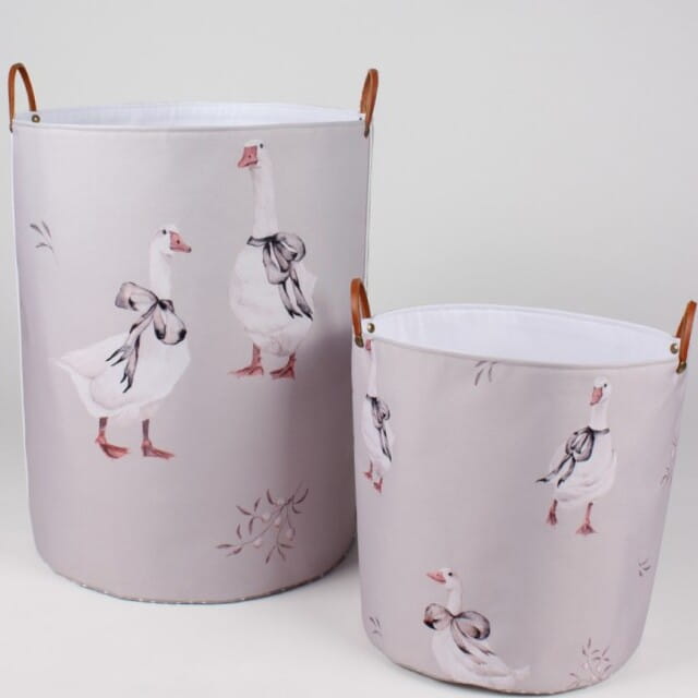 Pojemnik uszyty jest z 100%bawełny, usztywniony, dzięki czemu stabilnie stoi.