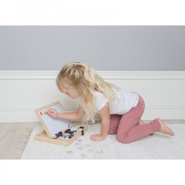 Poznaj literki i naucz się alfabetu razem z naszą magnetyczną tablicą Jabadabado. Ten edukacyjny zestaw zawiera cały alfabet w tym również literki skandynawskie i niemieckie, każda litera w dwóch egzemplarzach a najbardziej popularne w trzech, oraz po dwie sztuki każdej cyfry.